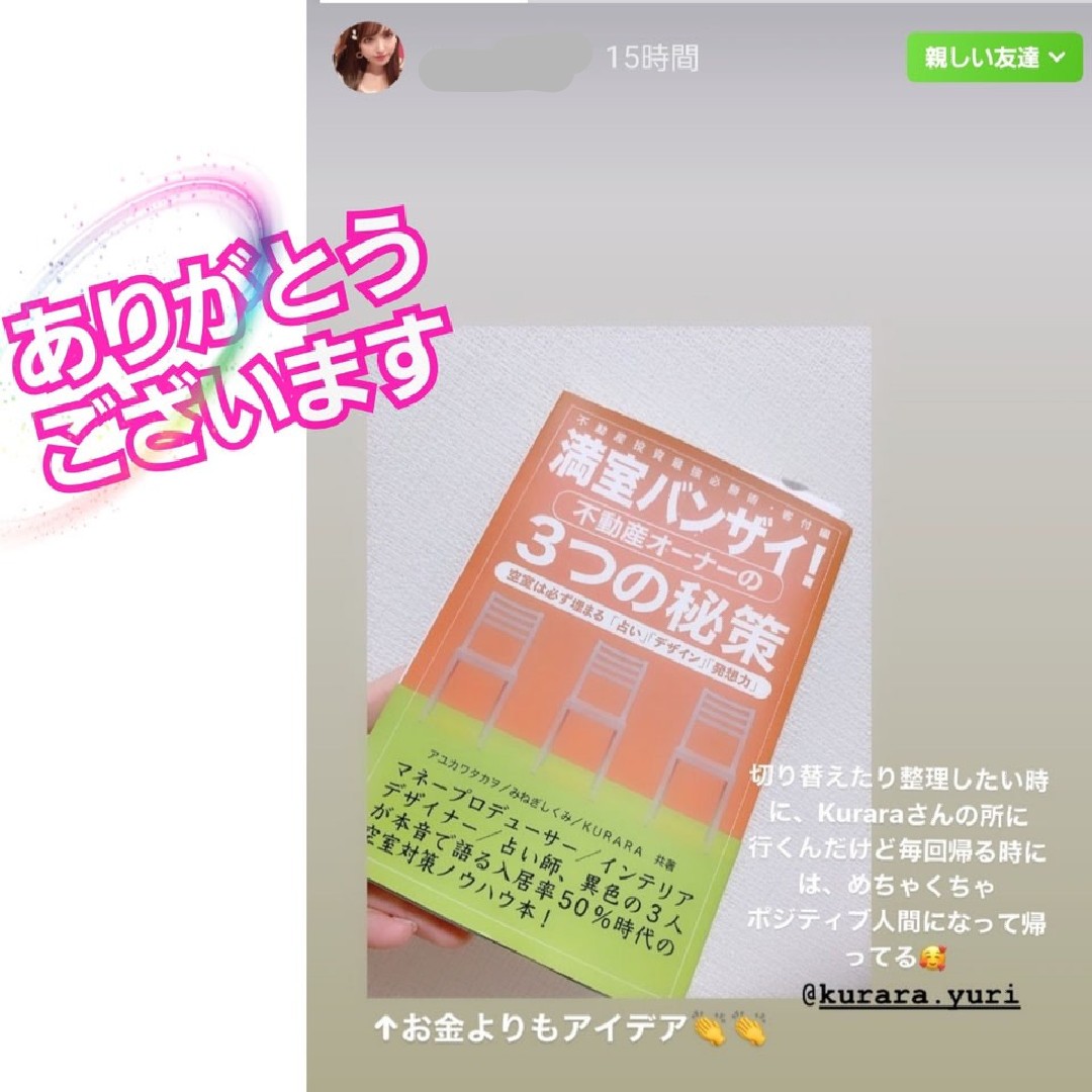 お客様が鑑定の感想をSNS載せて下さいました。 ありがとうございます。 フィードバックいただけると、とても励みになります。 今後も精進いたします。 #占い師 #コンサルタント #タロット #九星気学 #方位鑑定 #家相鑑定 #東京 #八丁堀 #満室バンザイ #感謝