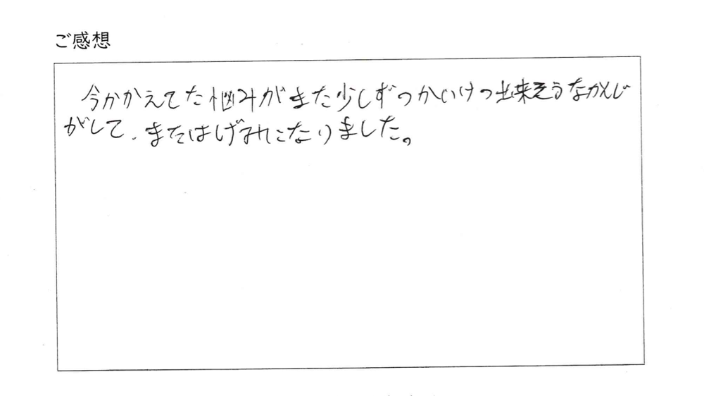お客様のご感想 · 2018/08/30 「励みになりました」 お客様より鑑定のご感想をいただきました。 ありがとうございます。 【ご感想】 今抱えていた悩みが また少しずつ解決できそうな感じがして、 また励みになりました。 tagPlaceholderカテゴリ: お客様のご感想