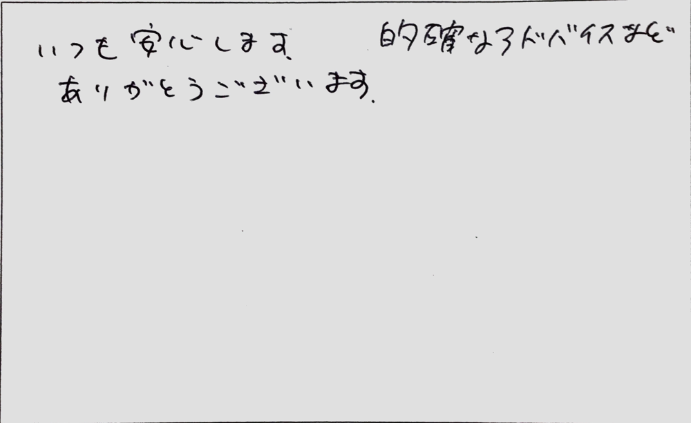 お客様のご感想 · 2019/09/04 「安心します」 お客様より鑑定のご感想をいただきました。 ありがとうございます! 【ご感想】 いつも安心します。 的確なアドバイスなど ありがとうございます。 (U様 20代女性) ★鑑定スケジュールはトップページから ★お客様からいただいたご感想一覧はこちら tagPlaceholderカテゴリ: お客様のご感想