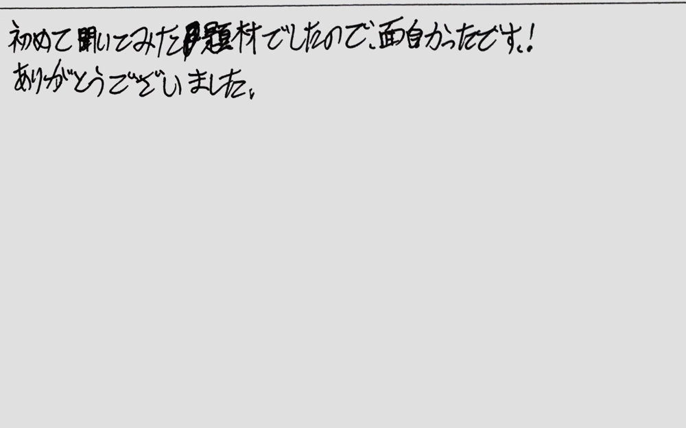 お客様のご感想 · 2019/09/17 「面白かったです!」 お客様より鑑定のご感想をいただきました。 ありがとうございます! 【ご感想】 初めて聞いてみた題材でしたので、面白かったです! ありがとうございました。 (M様 30代 女性) ★鑑定スケジュールはトップページから ★お客様からいただいたご感想一覧はこちら tagPlaceholderカテゴリ: お客様のご感想