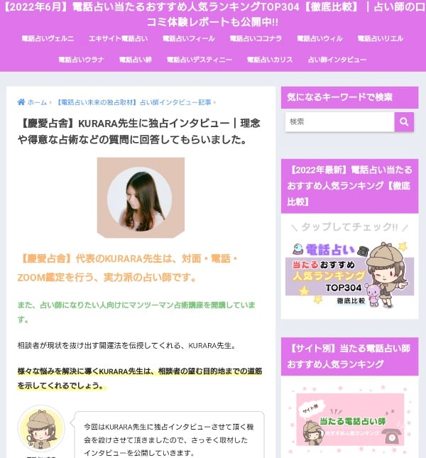電話占い未来様(https://denwauranai-media.co.jp/kurara-interview/)よりご依頼をいただき、サイトにインタビュー記事を掲載していただきました。